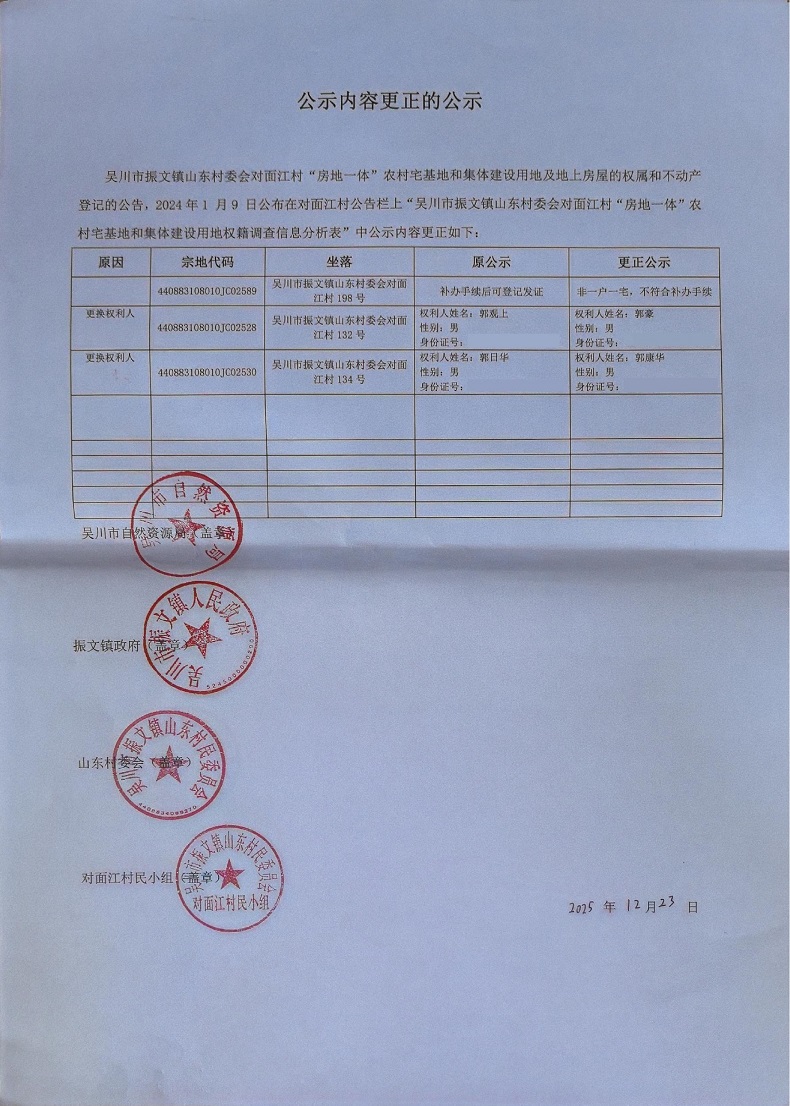吴川市振文镇山东村委会对面江村公示内容更正的公示.pdf