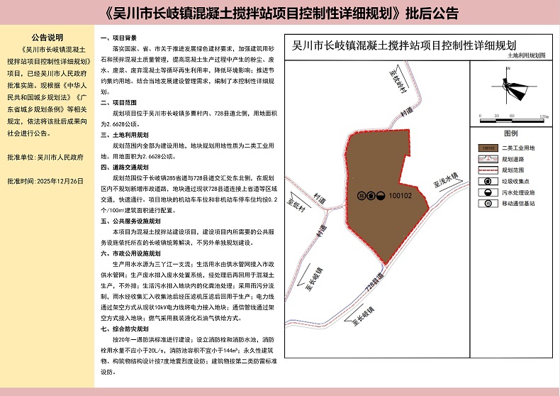 《吴川市长岐镇混凝土搅拌站项目控制性详细规划》批后公告