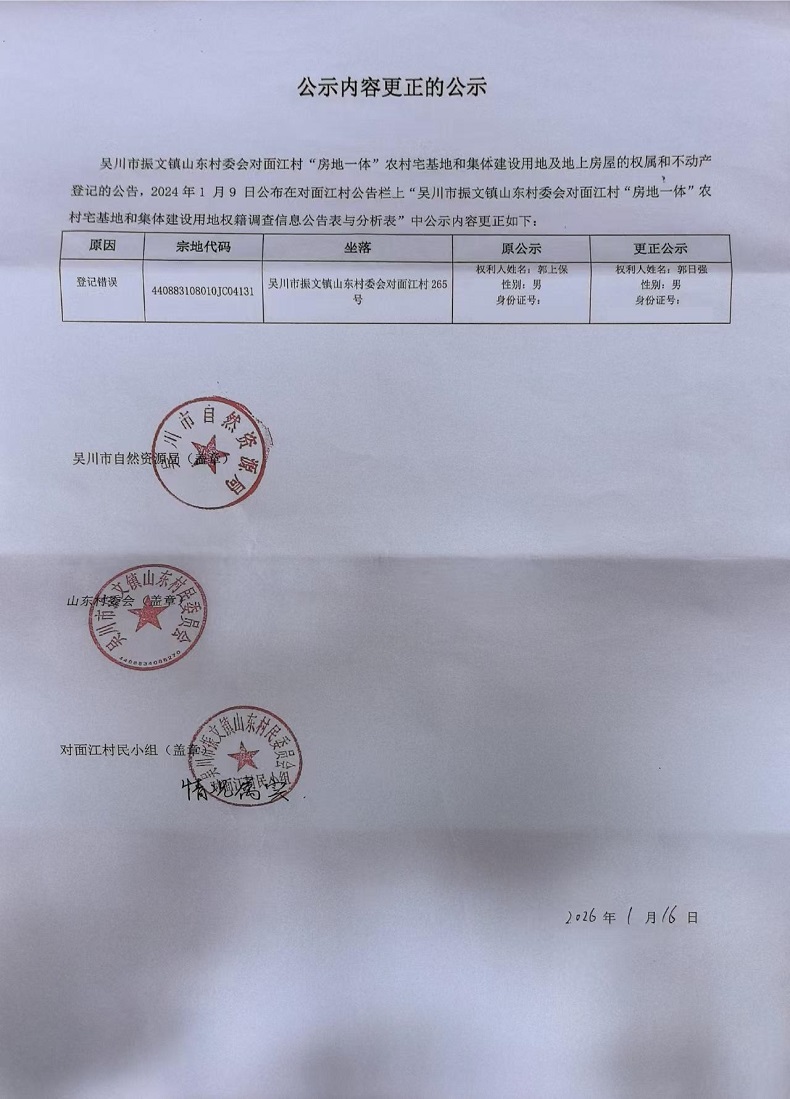 吴川市振文镇山东村委会对面江村公示内容更正的公示.pdf