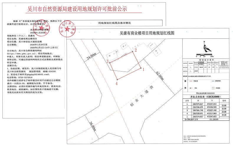 吴川市自然资源局建设用地规划许可批前公示(吴康有)