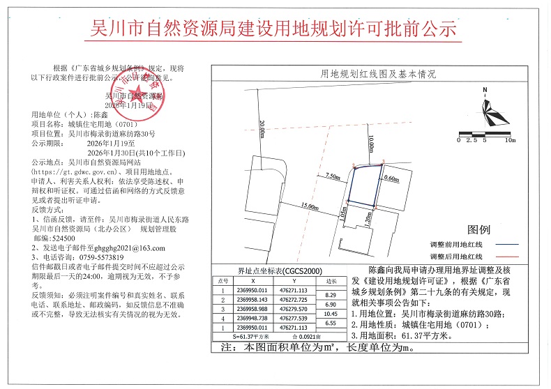 吴川市自然资源局建设用地规划许可批前公示(陈鑫)