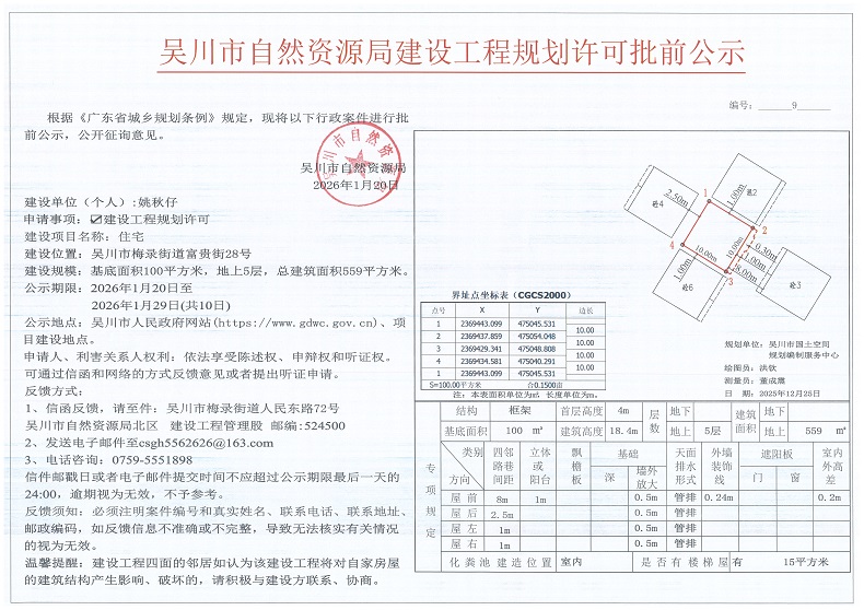 吴川市自然资源局建设工程规划许可批前公示(姚秋仔)