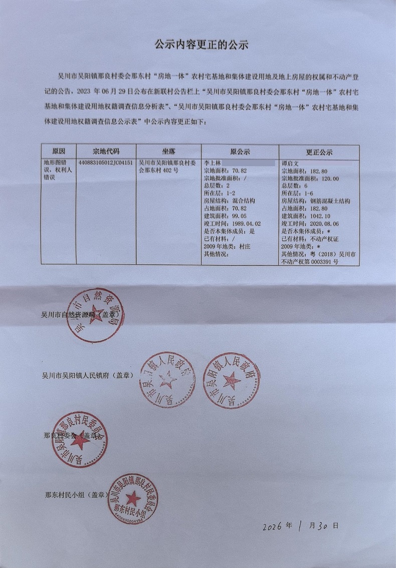 吴川市吴阳镇那良村委会那东村公示内容更正的公示.pdf
