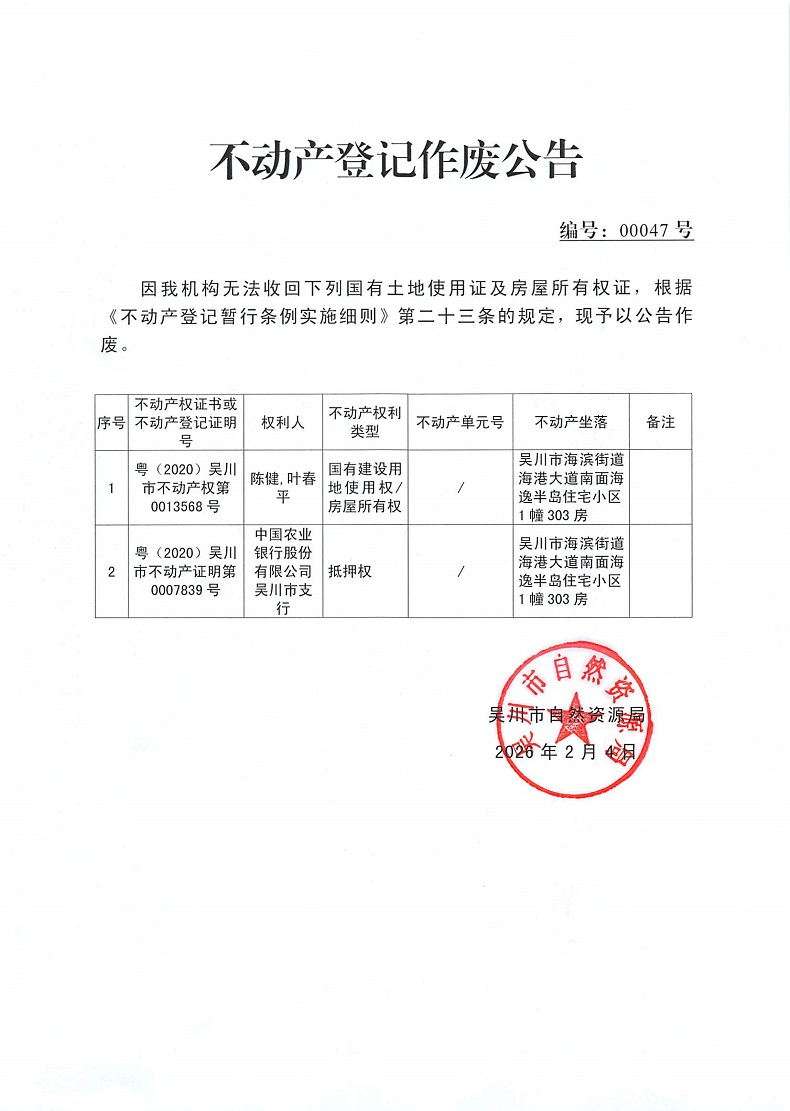 不动产登记作废公告(陈健,叶春平)