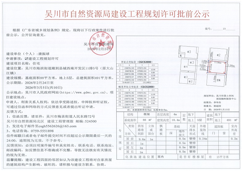 吴川市自然资源局建设工程规划许可批前公示(康振球)