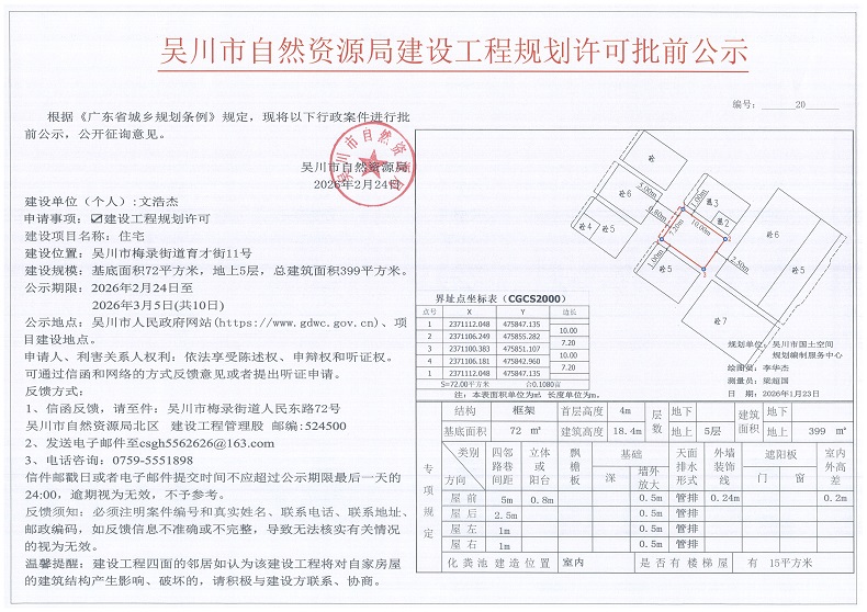 吴川市自然资源局建设工程规划许可批前公示(文浩杰)