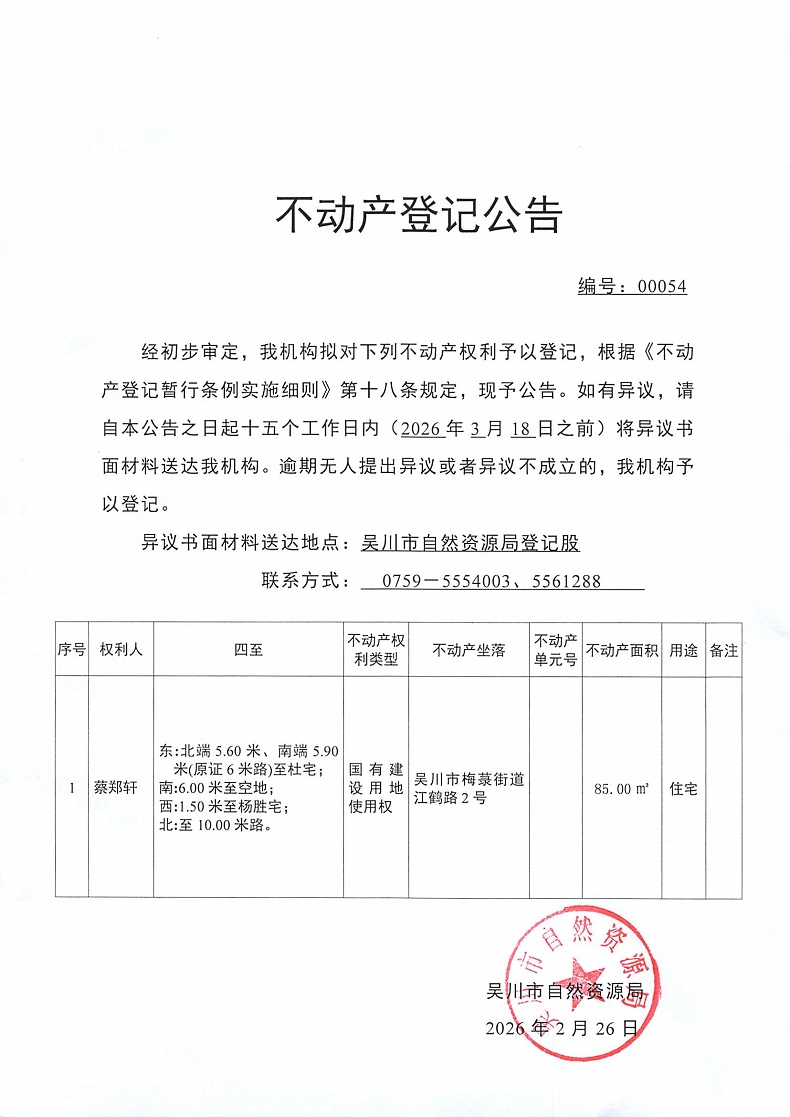 不动产登记公告(蔡郑轩)