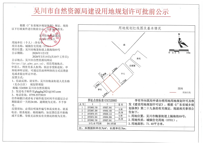 吴川市自然资源局建设用地规划许可批前公示(李有华)