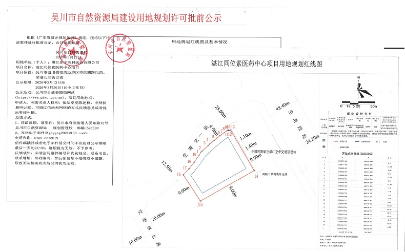 吴川市自然资源局建设用地规划许可批前公示(吴川市富韵科技有限公司8867.87㎡)