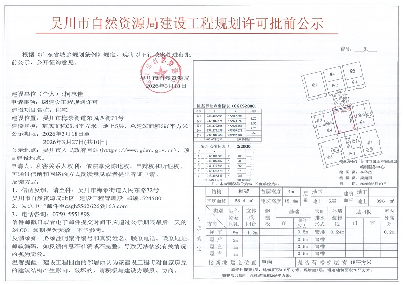 吴川市自然资源局建设工程规划许可批前公示(柯志佳)