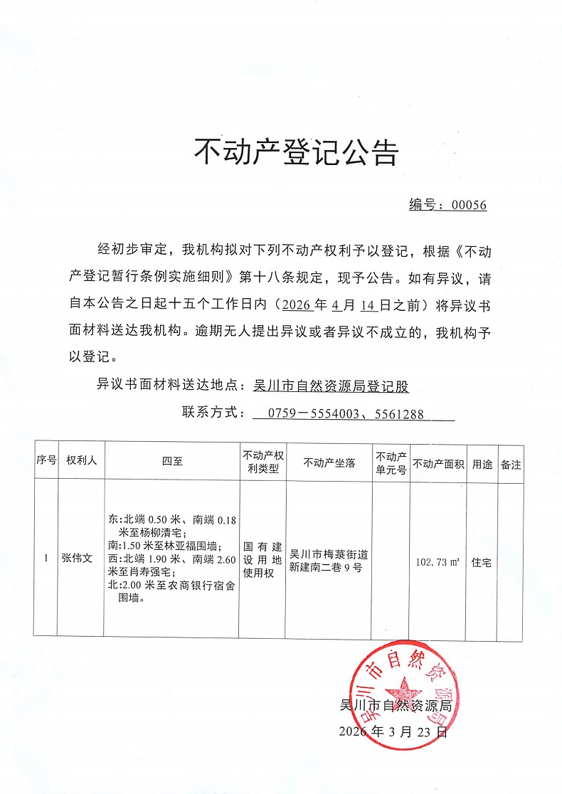 不动产登记公告(张伟文)