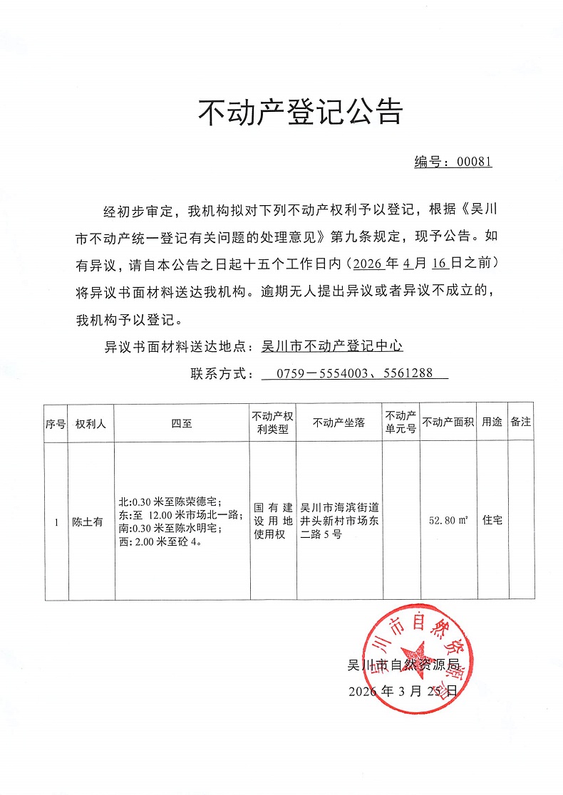 不动产登记公告(陈土有)