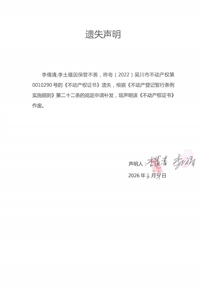 遗失声明(李倩清,李土福)