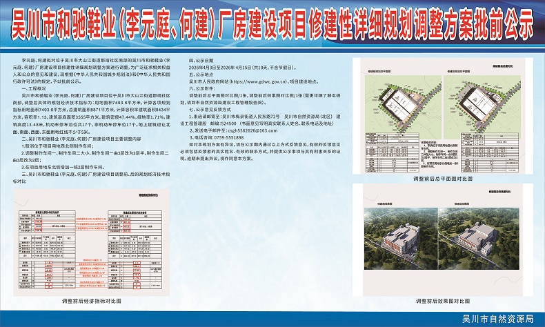 吴川市和驰鞋业(李元庭、何建)厂房建设项目修建性详细规划调整方案批前公示