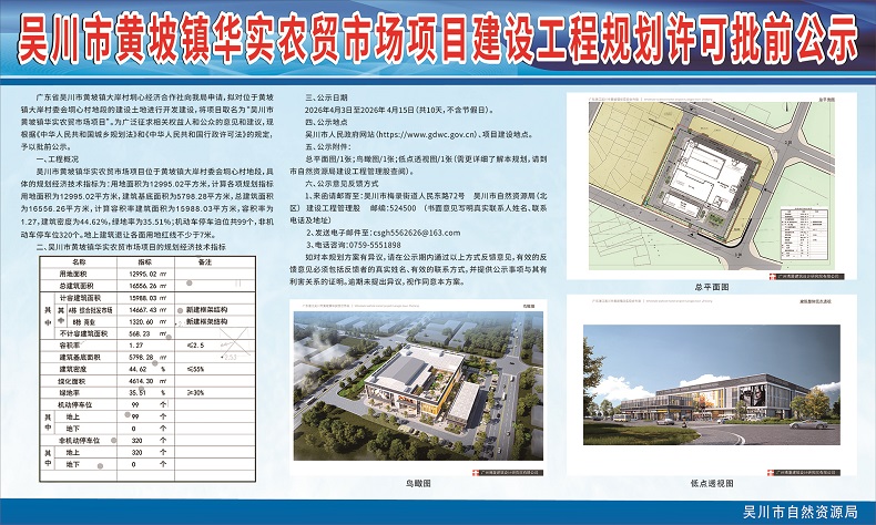 吴川市黄坡镇华实农贸市场项目建设工程规划许可批前公示