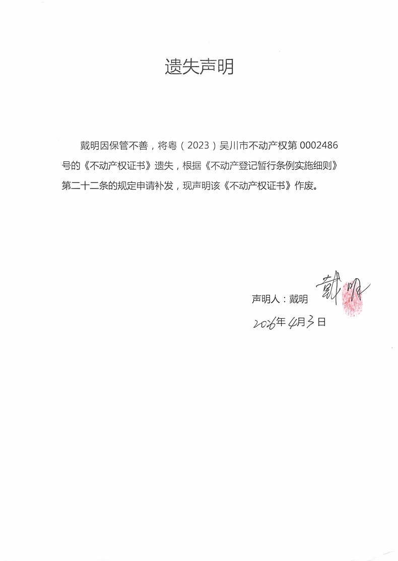 遗失声明(戴明)