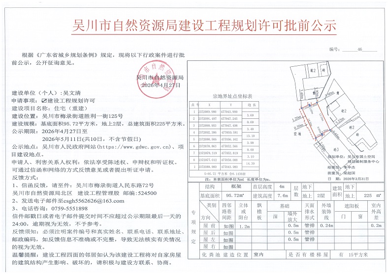 吴川市自然资源局建设工程规划许可批前公示(吴文清)