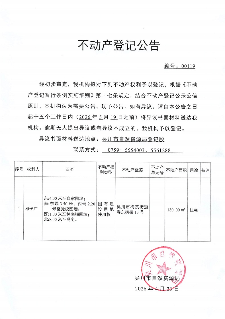 不动产登记公告(邓子广)