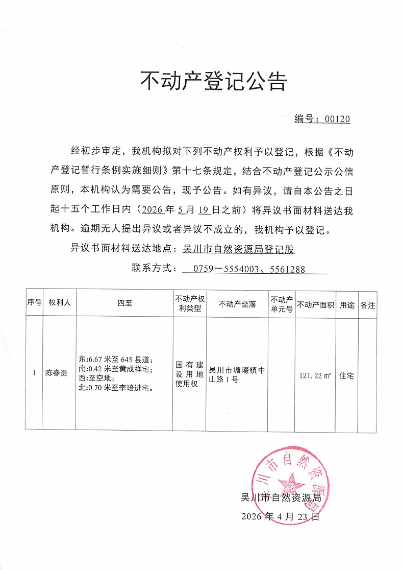 不动产登记公告(陈春贵)