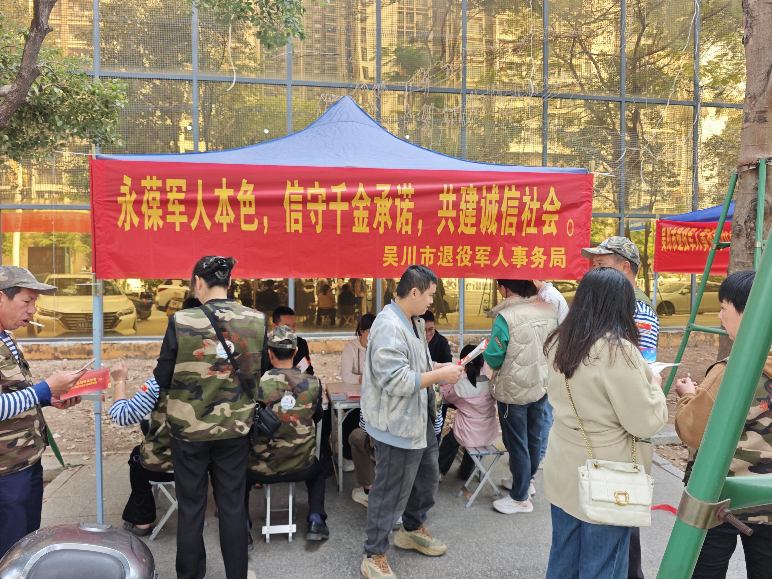 近日,吴川市退役军人事务局联合市港城老兵志愿者协会,在助力“百千万工程”挥春送福活动现场,同步组织开展“永葆军人本色,信守千金承诺,共建诚信社会”主题宣传活动,将新春祝福与诚信理念一同送入群众心中。