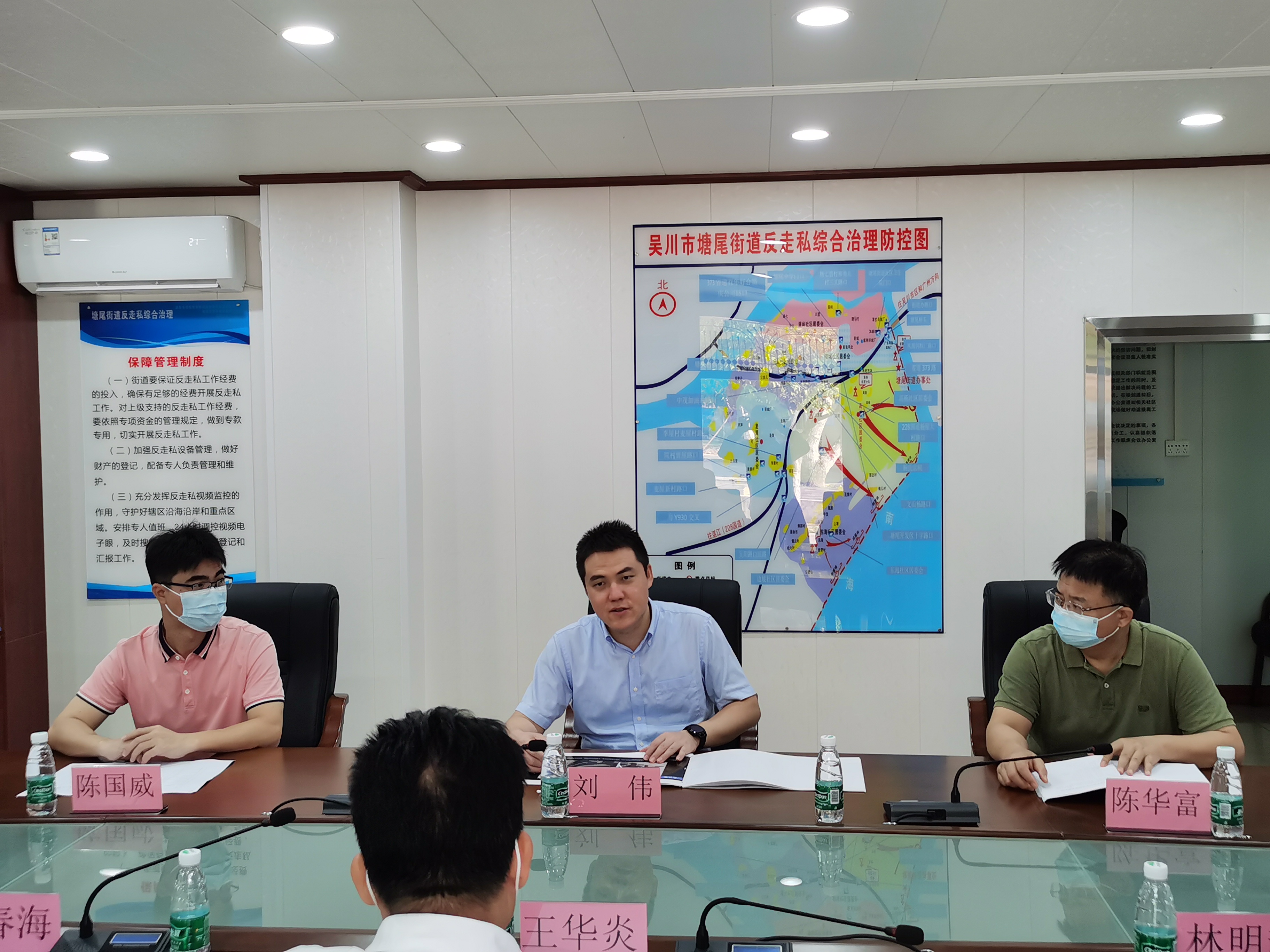 吴川市人民政府网讯 2022年11月13日上午,吴川市委副书记、代市长刘伟带领市人大常委会副主任陈华富,市自然资源局长陈国威一行到吴川市塘尾街道办督导“双反”及自然资源领域重点工作。吴川市打私办主任、公安局副局长林明超,塘尾街道党工委书记王华炎,塘尾街道办主任麦春海,党工委委员康有乾,公安局打私大队长李荣新等同志陪同调研。