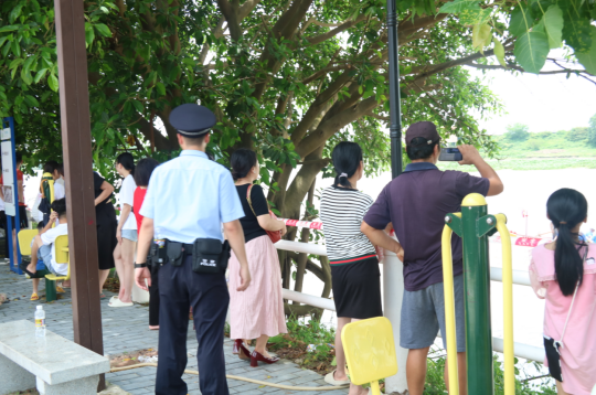 ▲博铺街道派出所干警协助做好端午龙赛现场安保工作