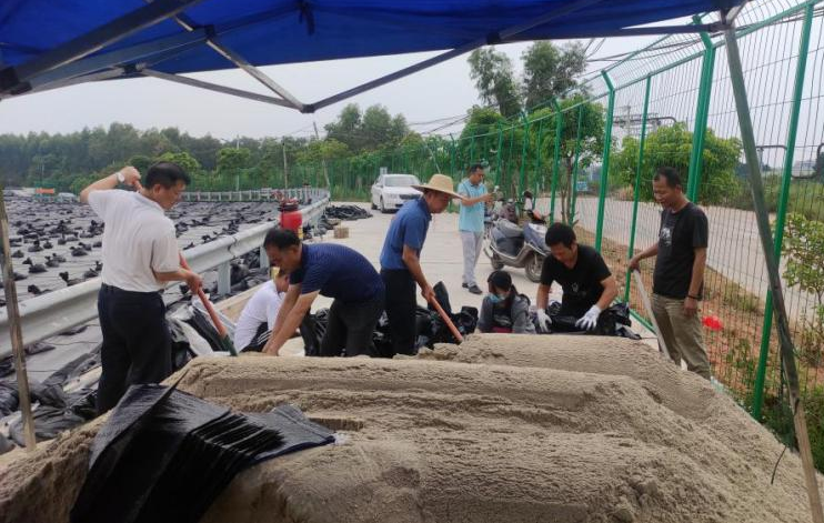 (灌装防汛沙袋,准备加固飞灰填埋场覆盖膜)