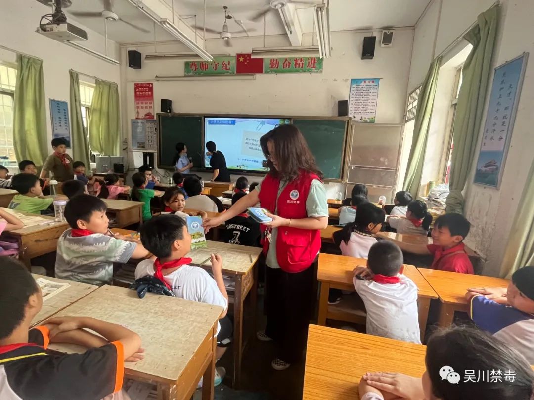 为了进一步加强青少年学生毒品预防教育,筑牢远离毒品思想防线,认识到抵制毒品的重要性,6月5日,大山江街道禁毒办联合街道综治办、社工站、大山江司法所走进大山江那孔小学开展禁毒宣传活动。