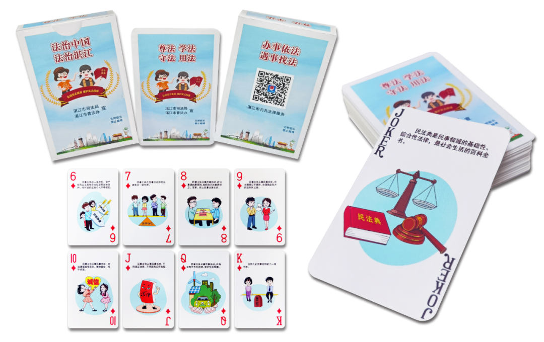 △实施“将民法典带回家”“十百千万”工程,精心设计制作了含民法典内容的普法扑克牌,首批印刷了10000副分发给十个机关百所学校千条乡村(社区)一万个人手上,让老百姓在茶余饭后娱乐时潜移默化地了解民法典。