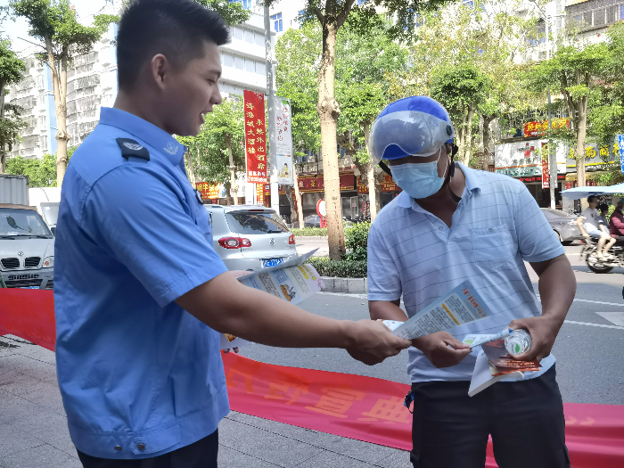 5月31日上午,在市水务局副局长杨兴杰、党组成员、办公室主任陈观金带领下,共青团吴川市水务局支部委员会联同水务局办公室、水资源股、建管股、河湖股、水政监察大队开展普法宣传活动。
