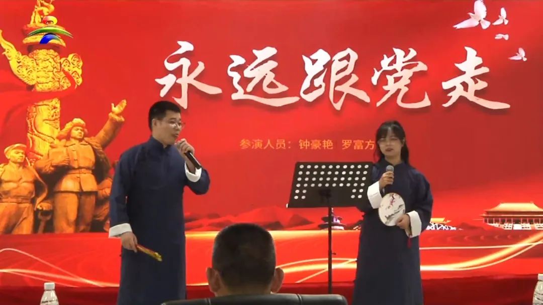 当晚活动形式多样,内容丰富。诗歌朗诵《七月的天空》抒发了爱党爱国爱社会主义的情怀,大合唱《少年》展现了青年党员干部的蓬勃朝气和激情活力,相声《永远跟党走》生动地讲述了中国式现代化的首要任务、五个特征等内容,还有扑克牌魔术、男女合唱等节目,生动活泼精彩的表演赢得了台下观众热烈的掌声。