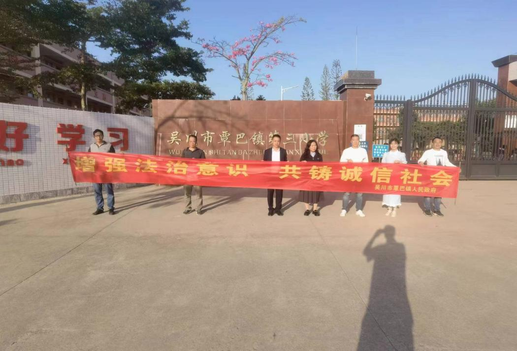 为加快推进社会信用体系建设工作,2023年11月21日下午,吴川市覃巴镇经济办到吴川市安基新型环保建材有限公司和覃巴镇第三小学开展了“增强法治意识,共铸诚信社会”主题诚信宣传活动,通过座谈,发放宣传手册等方式深入企业和学校一线,进一步提高广大企业、师生的诚信意识,共筑诚信吴川,诚信覃巴。
