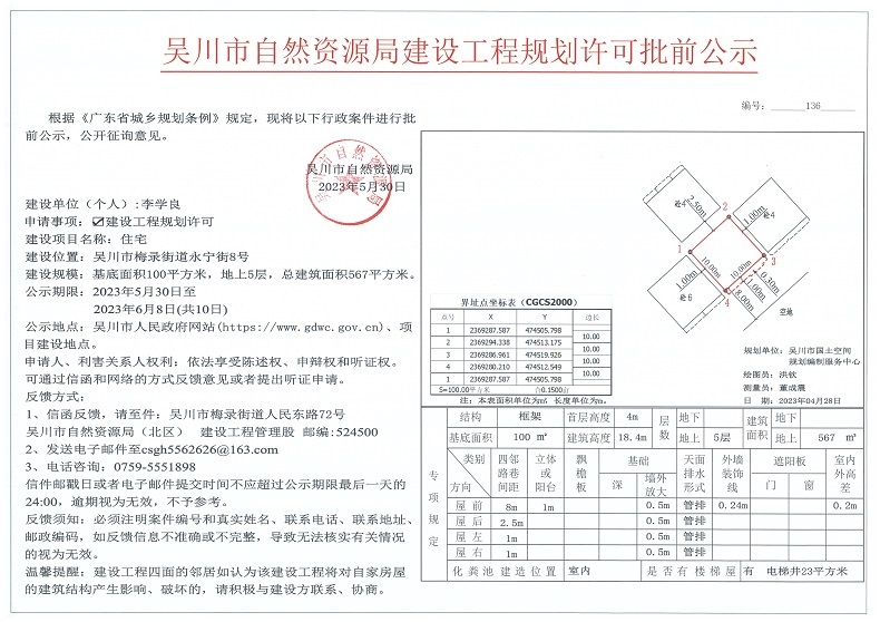 吴川市自然资源局建设工程规划许可批前公示(李学良)
