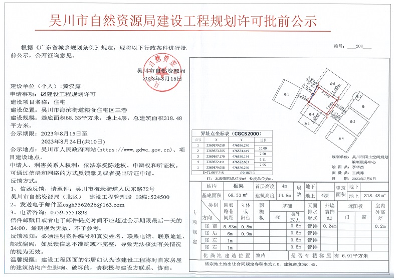 吴川市自然资源局建设工程规划许可批前公示(黄汉露)