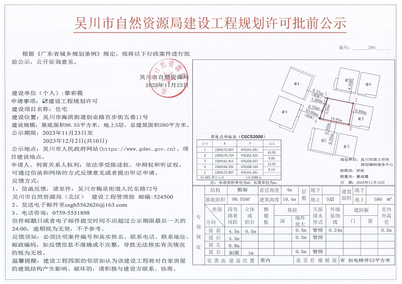 吴川市自然资源局建设工程规划许可批前公示(黎彩霞)