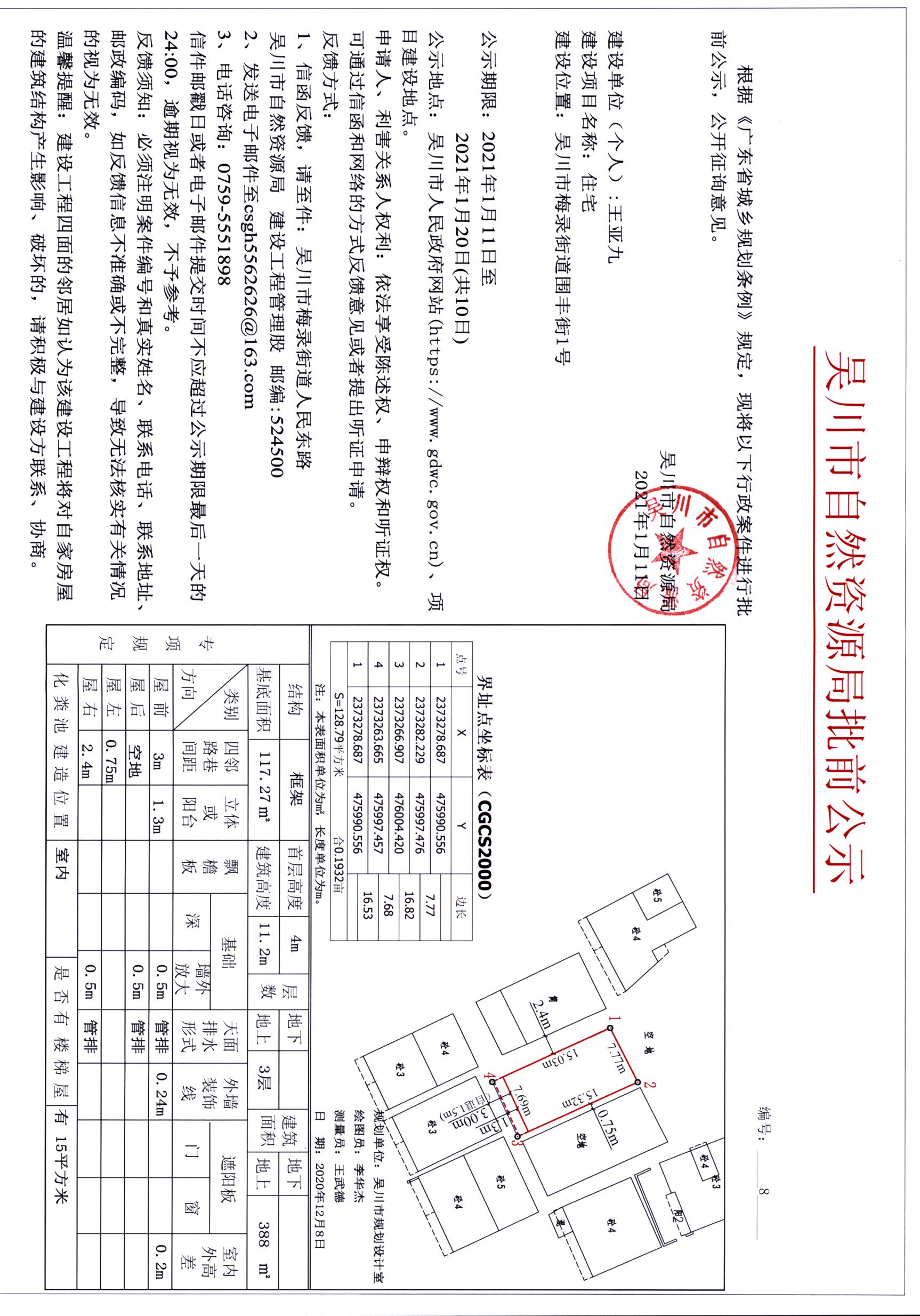 吴川市自然资源局批前公示(王亚九)