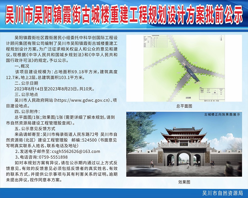 吴川市吴阳镇霞街古城楼重建工程规划设计方案批前公示