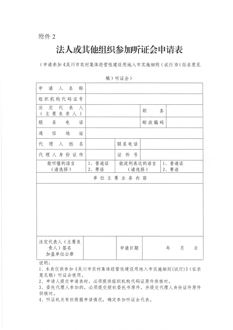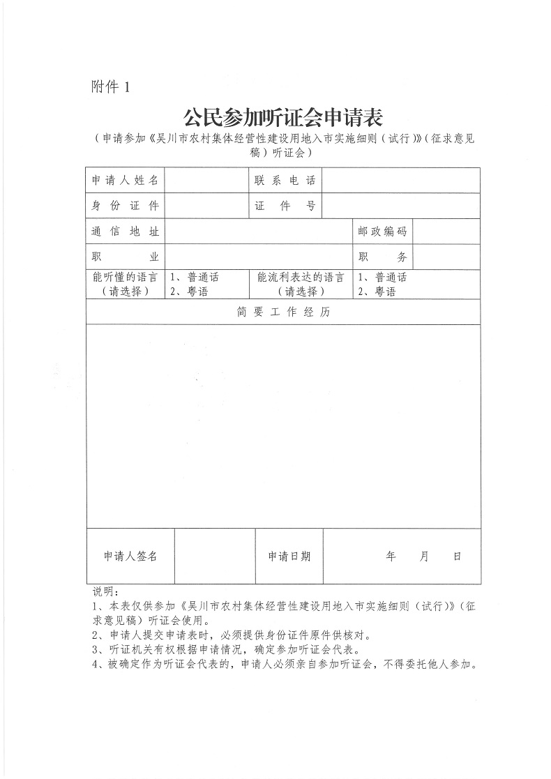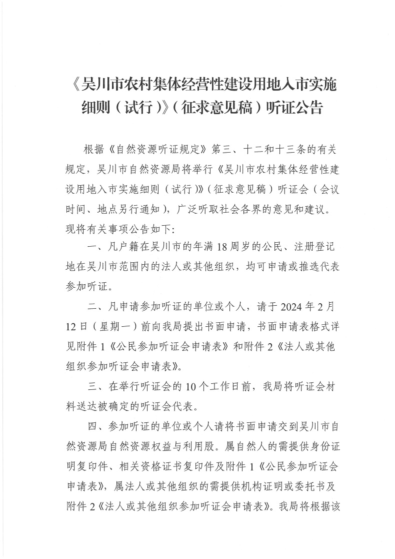 《吴川市农村集体经营性建设用地入市实施细则(试行)》(征求意见稿)听证公告