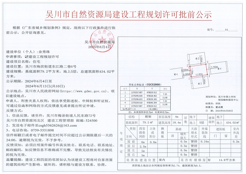 吴川市自然资源局建设工程规划许可批前公示(余秀珠)