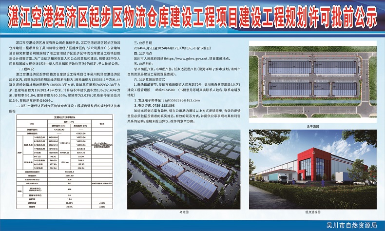 湛江空港经济区起步区物流仓库建设工程项目建设工程规划许可批前公示