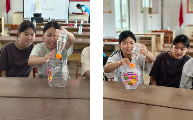 空瓶里的乒乓球,一倒就掉;装满水的瓶子倒过来,乒乓球居然牢牢 “粘” 在瓶口!青少年们凑到跟前仔细看,好奇地问 “它怎么不掉呀?”