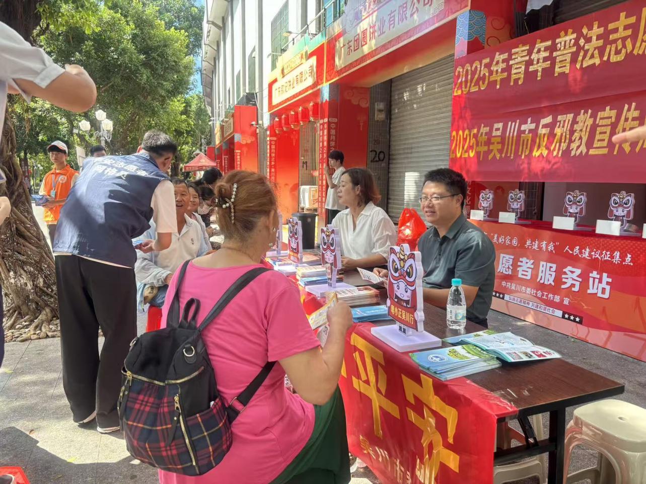 为深入推进反邪教警示教育,切实提高辖区居民识别、防范和抵制邪教侵蚀的意识和能力,营造崇尚科学、反对邪教、和谐稳定的社会氛围。吴川市委政法委联合梅菉街道平安法治办结合2025吴川月饼文化博览月,在江心岛开展反邪教专题宣传活动。市委政法委副书记黄兴娣、梅菉街道党工委副书记陈世斌临现场指导工作,并与志愿者一同开展宣传。