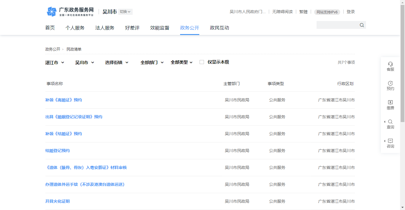 吴川市民政局办事指南 请查看该链接