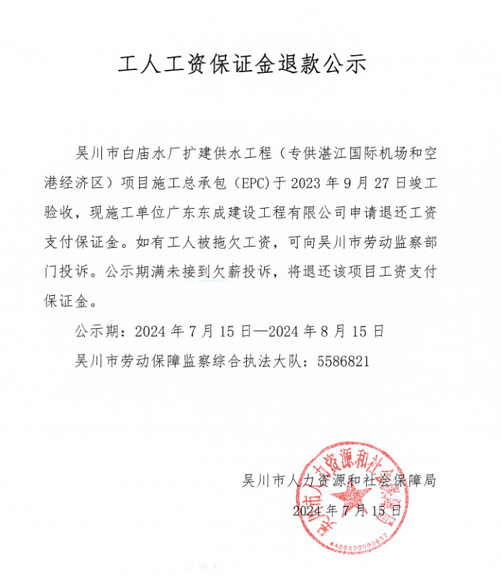 吴川市白庙水厂扩建供水工程(专供湛江国际机场和空港经济区)项目施工总承包(EPC)