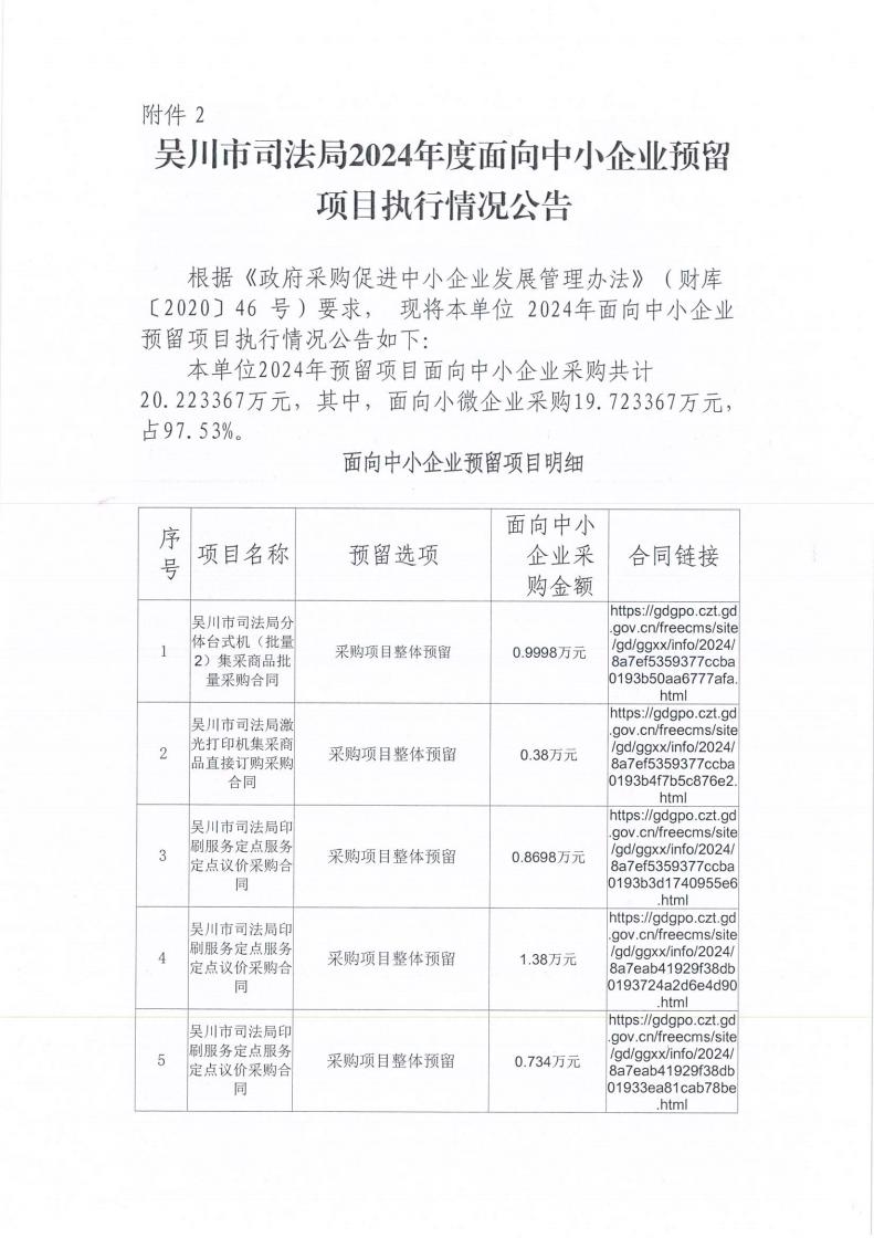吴川市司法局2024年度面向中小企业预留项目执行情况公告