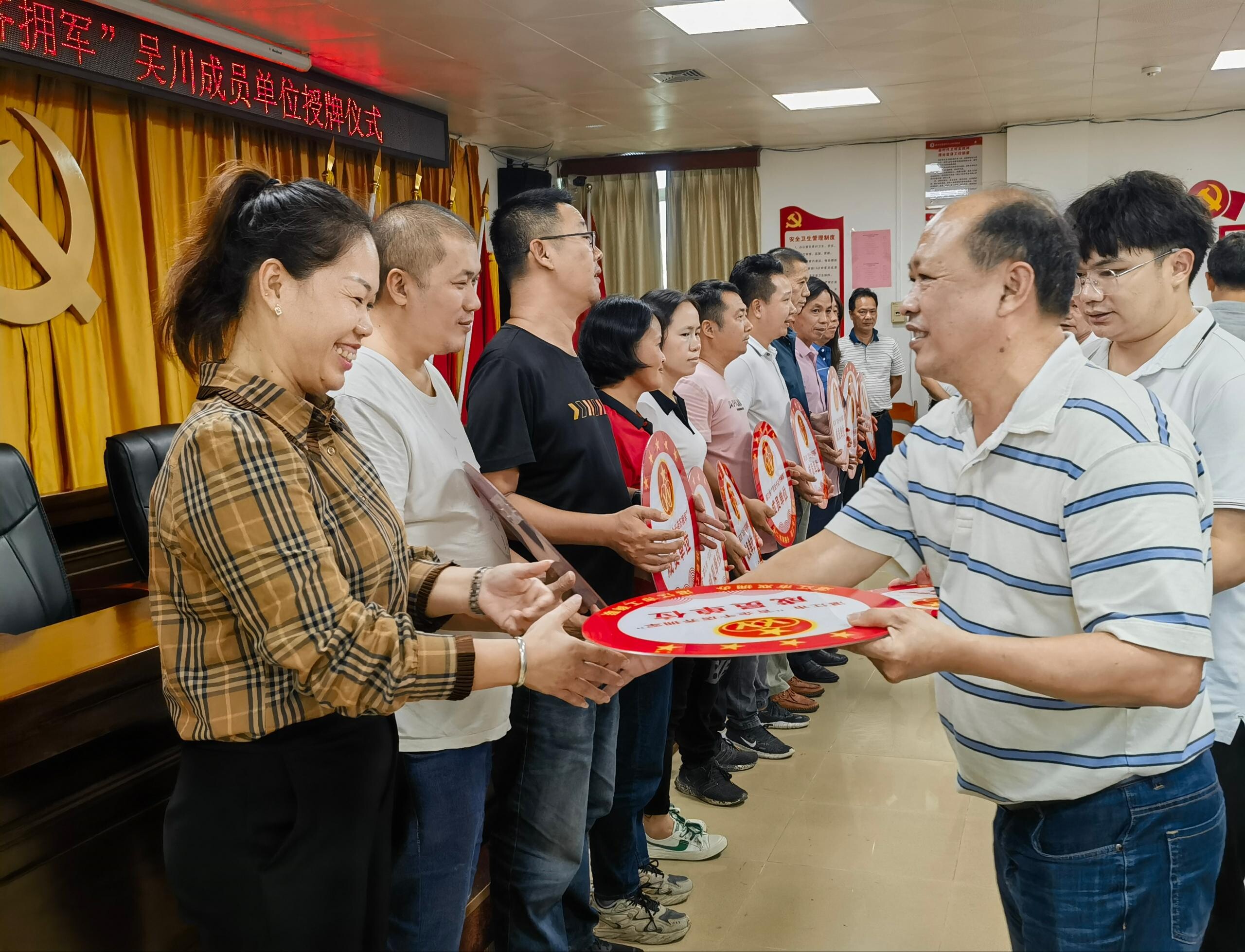为深入贯彻落实习近平新时代中国特色社会主义思想,进一步拓展退役军人和其他优抚对象优待证功能,大力营造尊崇军人职业、尊重退役军人的社会氛围,11月10日,湛江市“百企千店齐拥军”吴川成员单位授牌仪式在海滨街道办举行,为我市37家“百企千店齐拥军”成员单位授牌。