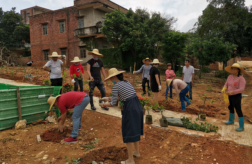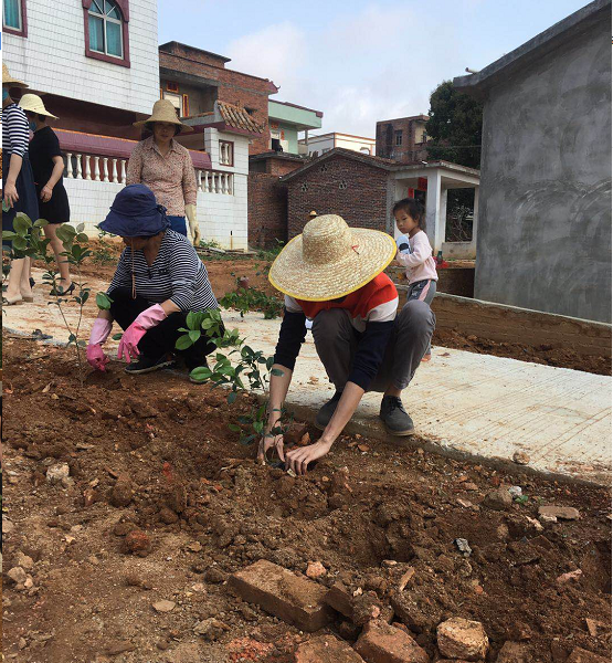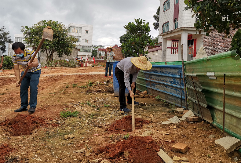 王村港镇领导干部带领新梅村委会到米楼村参与美化绿化工作