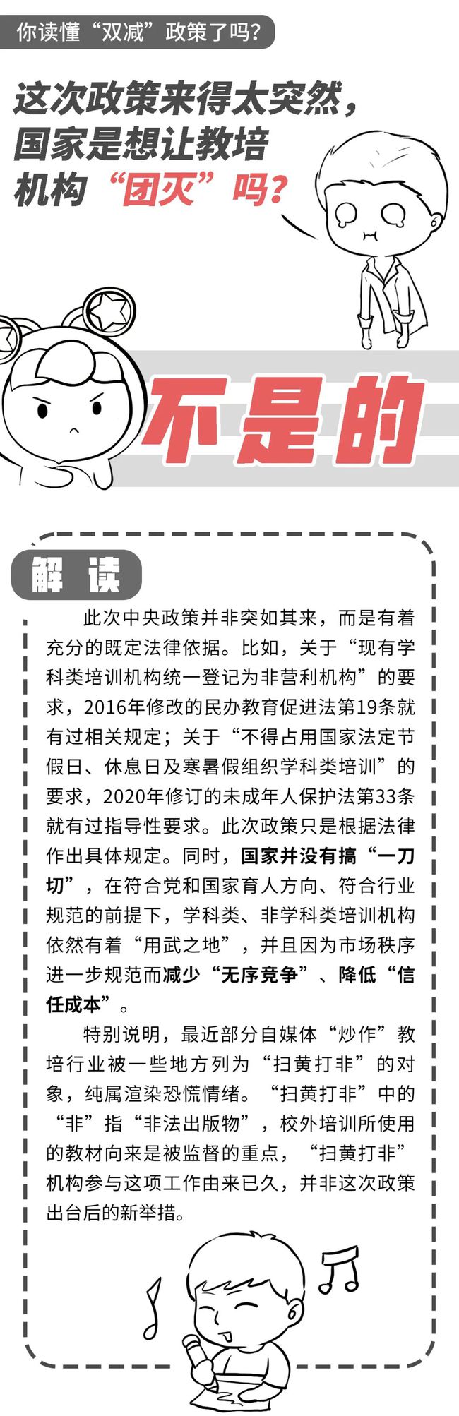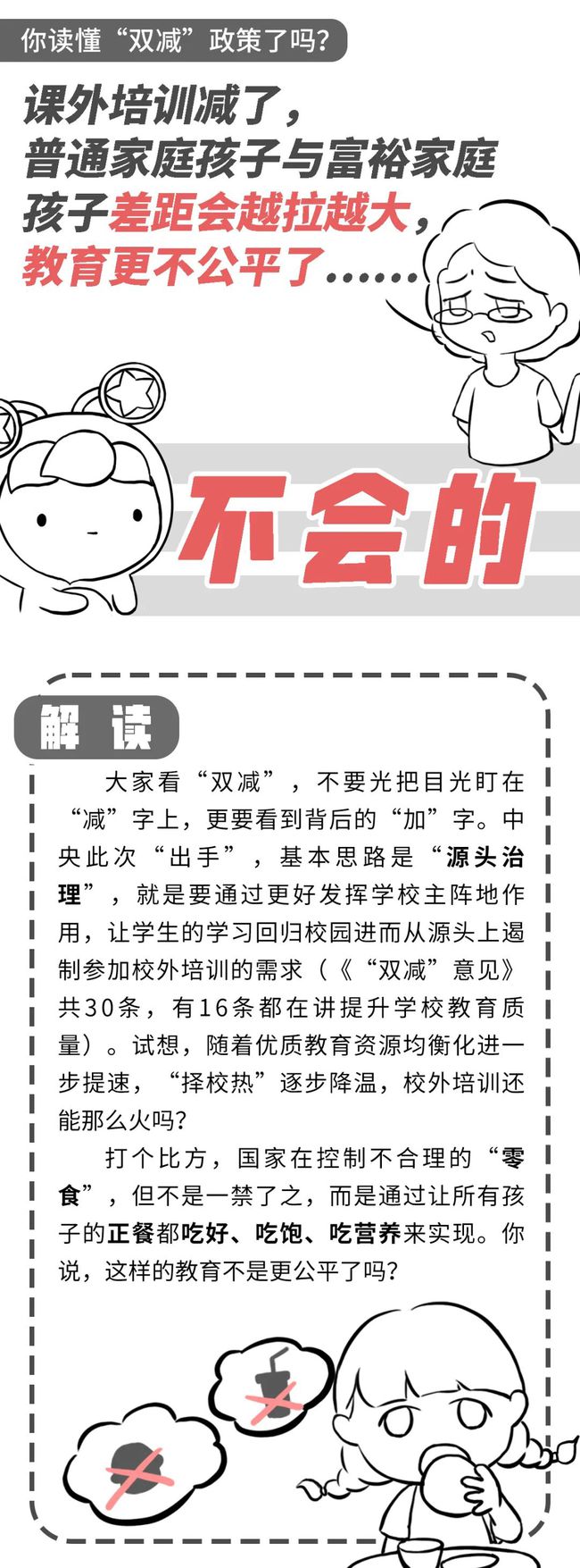 关联阅读:《关于进一步减轻义务教育阶段学生作业负担和校外培训负担的意见》http://www.moe.gov.cn/jyb_xxgk/moe_1777/moe_1778/202107/t20210724_546576.html