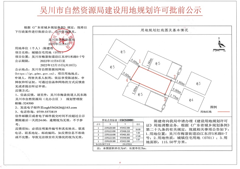 吴川市自然资源局建设用的规划许可批前公示(陈建奇)