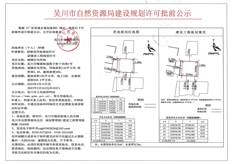吴川市自然资源局建设规划许可批前公示(钟钢)